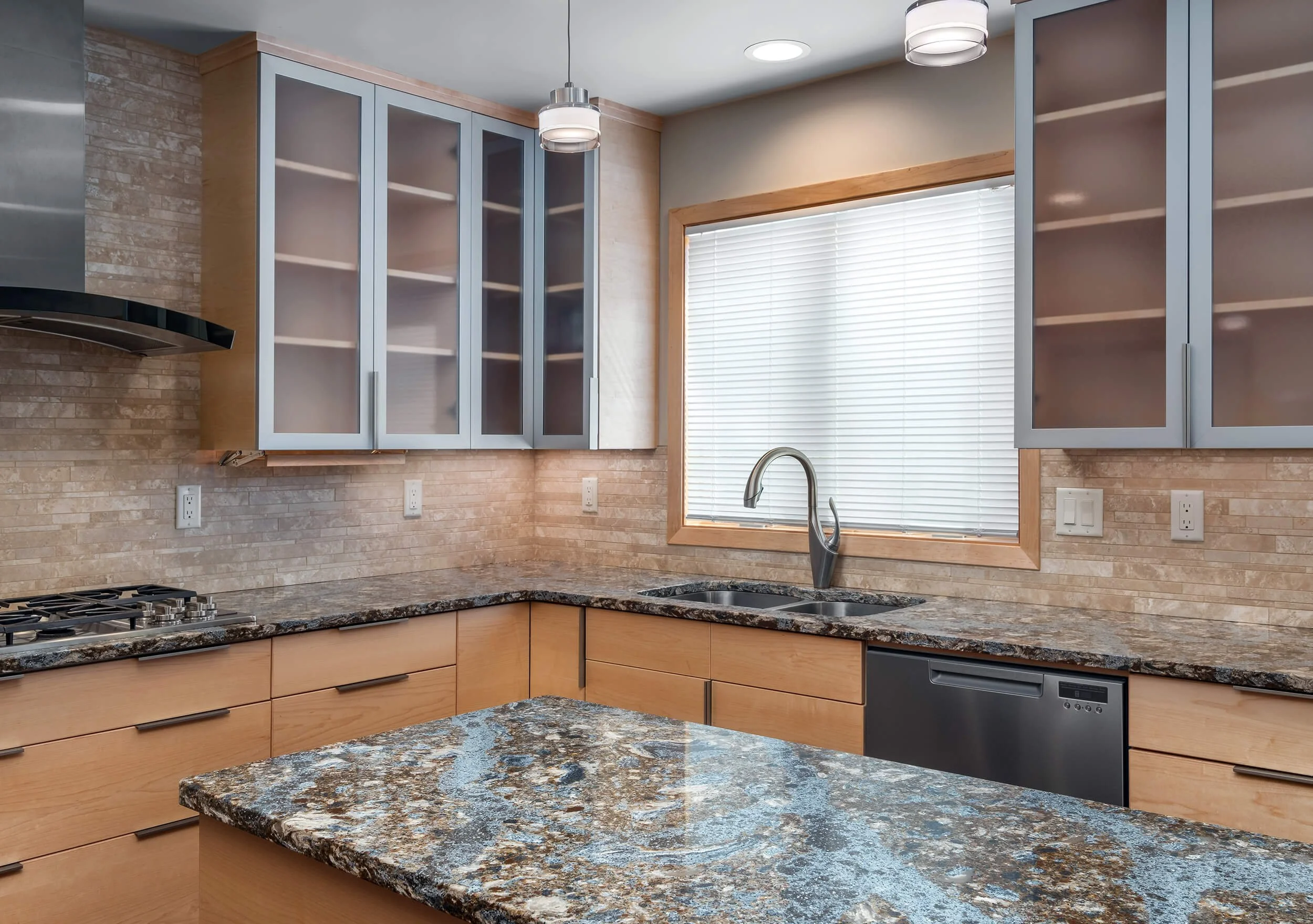 Our team undertook a complete restoration of this home’s kitchen. The original cabinets were drab, outdated, and impractical. We worked with a trusted craftsman to update the cabinetry with aluminum frames, a new layout, and an artistic, chic design.