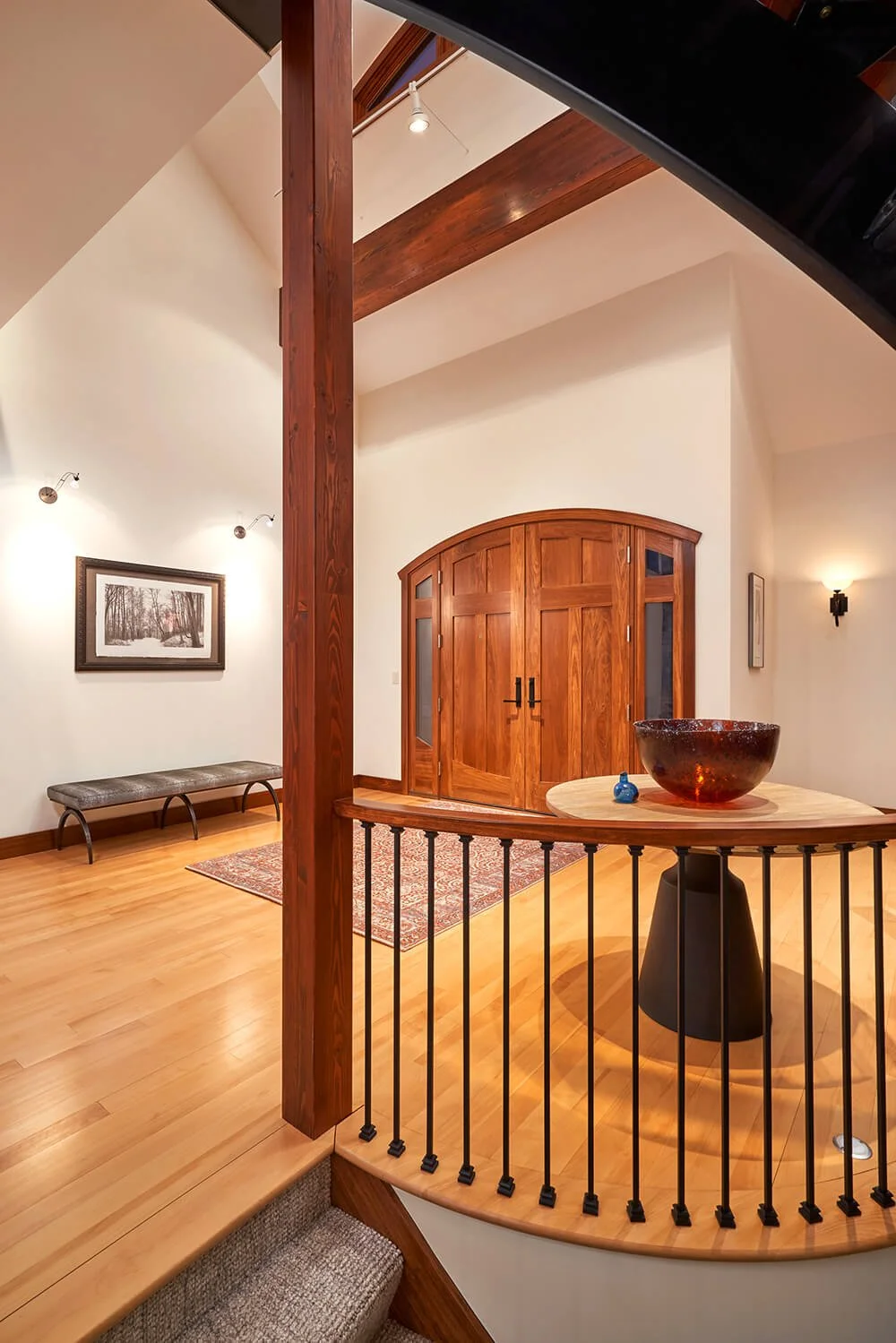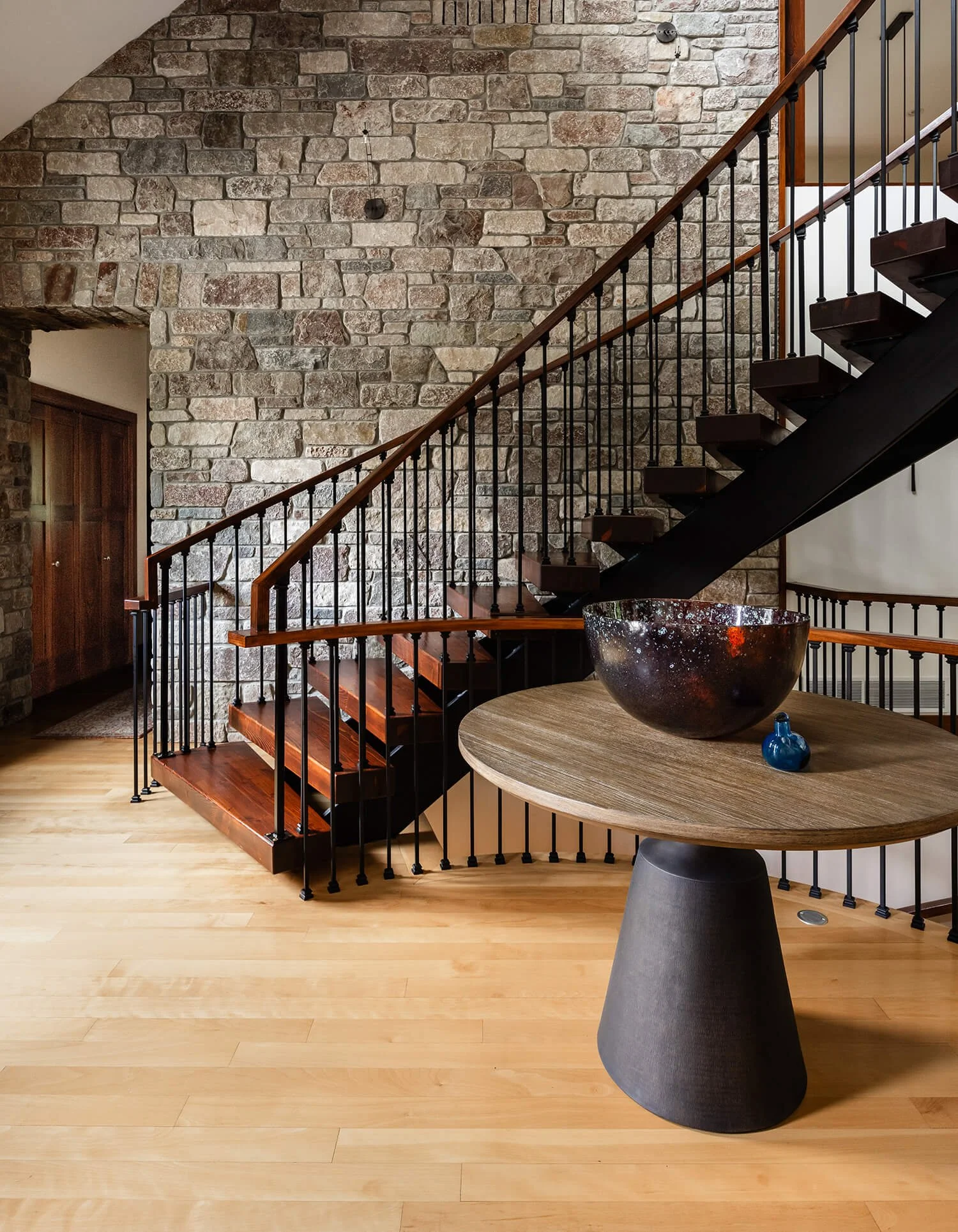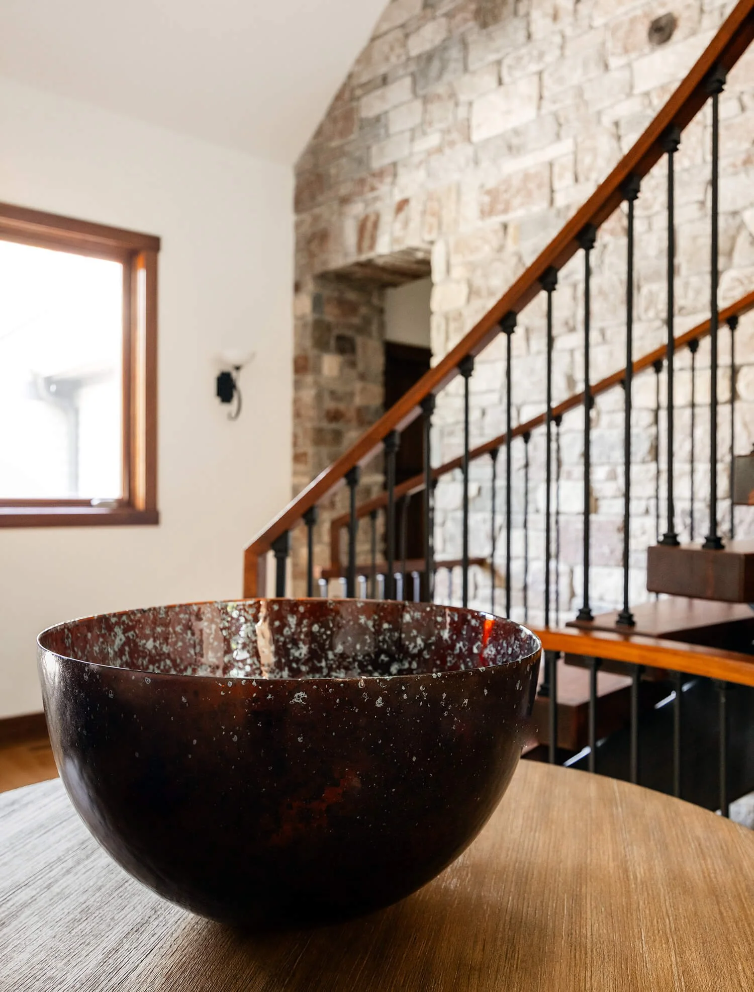 Inspired by our client’s love for the North Shore region of Northern Minnesota’s landscape and her extensive art collection—Including a triptych of the North Shore forest in autumn, vibrantly displaying the orange, gold, and green of the aspen trees—we curated a color palette of deep neutrals to complement the home's natural elements and bring the expansive outdoor views inside.